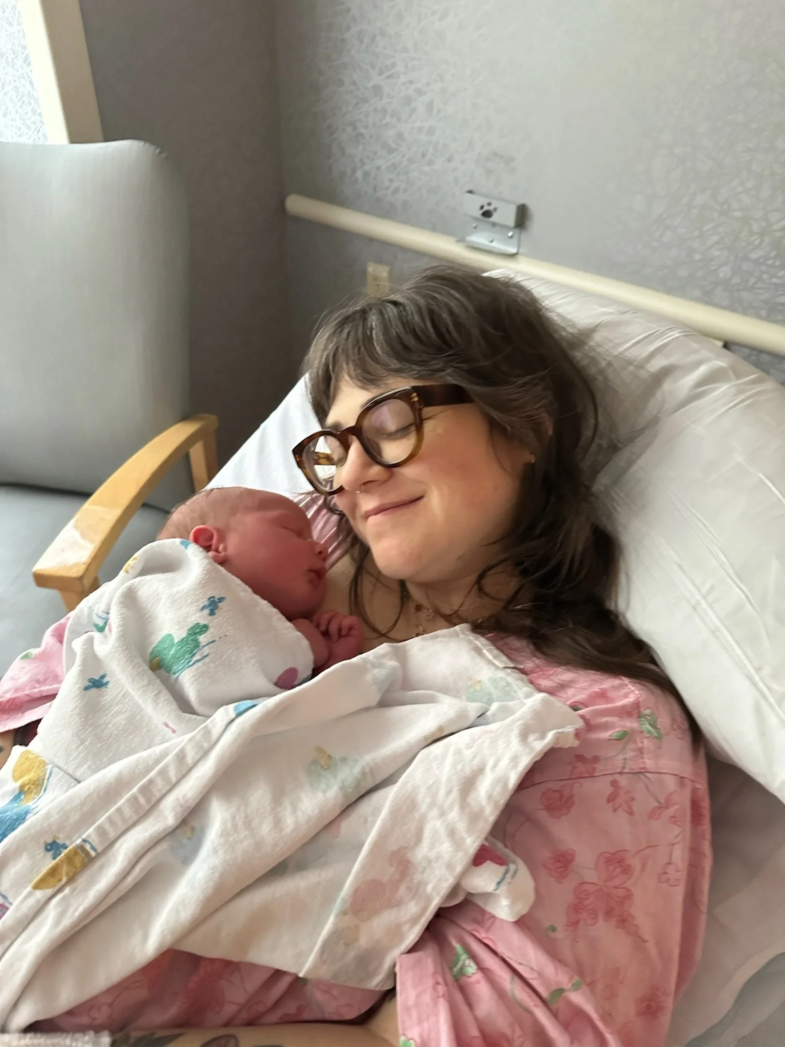 my doula also arrived right when they were starting pitocin and instantly started doing some circuits with me to help baby get in an optimal position, which was amazing. my doula was truly incredible this whole journey - she did not let me sit down (which was hard and i didn’t really want to do the movements in the moment because i was in pain with each contraction, but also i know it was so great for me and baby 😂).